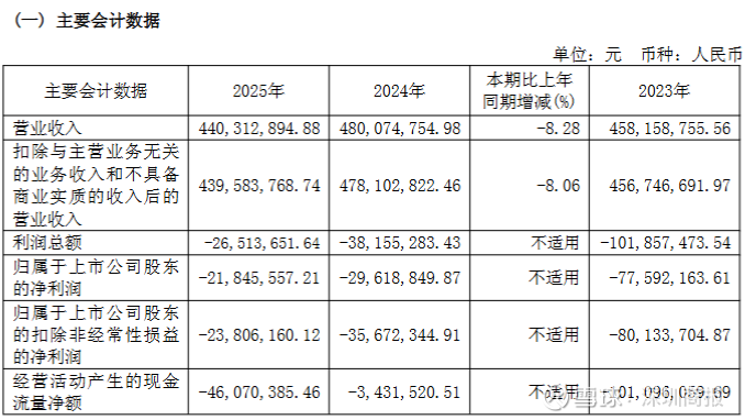这是公司连续第三年亏损。2023年、2024年,公司归母净利润分别亏损7759万元、2962万元。