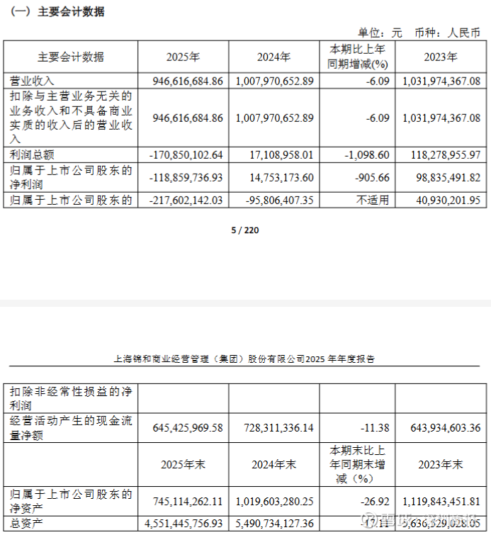 2月28日,锦和商管(603682)发布2025年年报。财报显示,公司2025年度营业总收入9.47亿元,同比下降6.09%,归母净利润-1.19亿元,同比下降905.66%。经营活动产生的现金流量净额6.45亿元,同比下降11.38%。