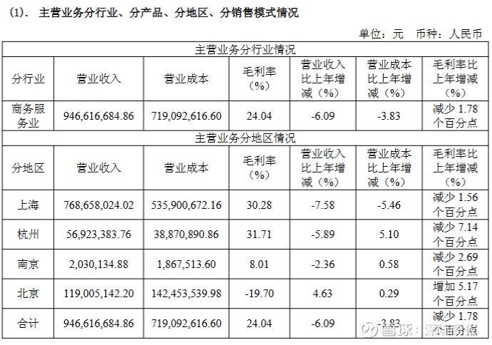 从地区经营情况来看,公司在上海地区的营收降幅最大,达到7.58%,在杭州地区的毛利率降幅最大,达到7.14个百分点。北京地区虽年末出租率较年初有明显提升。但是,两个园区(锦荟园、朝阳里)成本支出相对刚性,因此北京地区毛利率仍为负数。