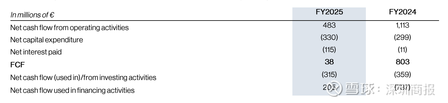 值得注意的是,2025年,梦龙的自由现金流为3800万欧元,与2024年的8.03亿欧元相比暴跌95%。梦龙表示,现金流变动主要是由于与分拆相关的大量现金流出、实施临时运营模式、新贷款的利息支出以及与联合利华签订的特许经营协议所致。