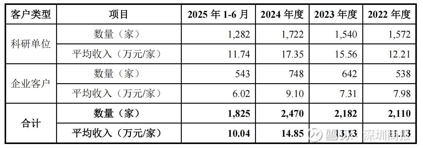从公司服务客户单位维度,2022年至2025年1-6月,公司服务单位数量分别为2110家、2182家、2470家和1825家,客户数量较多且呈逐年上升趋势,单个客户的平均销售收入较低。