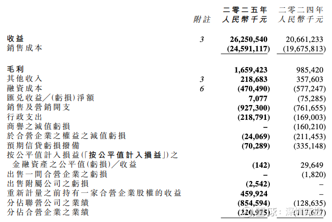 截至2025年12月31日止年度,集团分占联营公司及合营企业的业绩均录得亏损,分别为8.55亿元和2.21亿元。主要归因于集团早年间所投资的联营公司及合营企业,在房地产市场整体低迷的不利环境中,遭遇了项目层面的亏损,影响了整体业绩。
