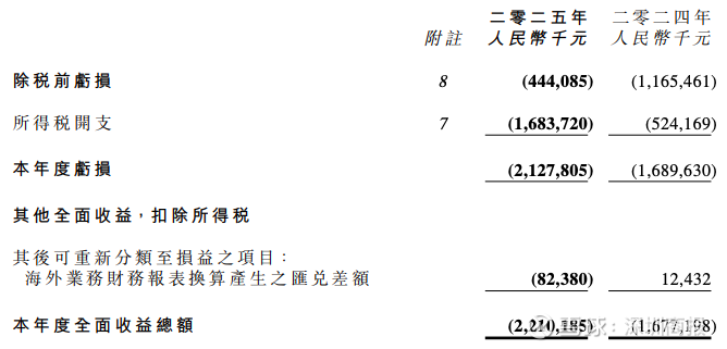 2025年度,公司拥有人应占亏损为22.01亿元,亏损同比增加约18.9%。每股基本及摊薄亏损为44.87分。