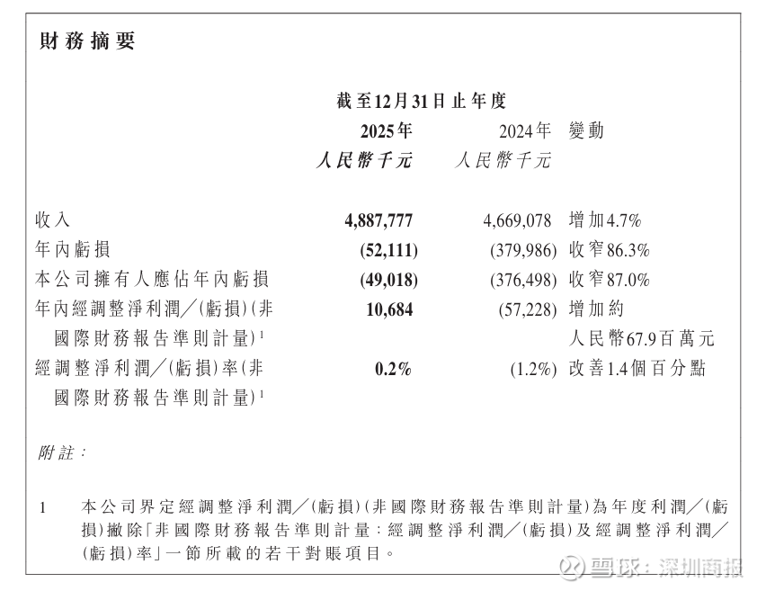 3月20日晚间,叮当快药母公司叮当健康(09886)发布的公告显示,该公司2025年实现总收入48.88亿元,同比增长4.7%;年内亏损5211万元,亏损同比收窄86.3%;公司拥有人应占年内亏损4902万元,亏损同比收窄87%。