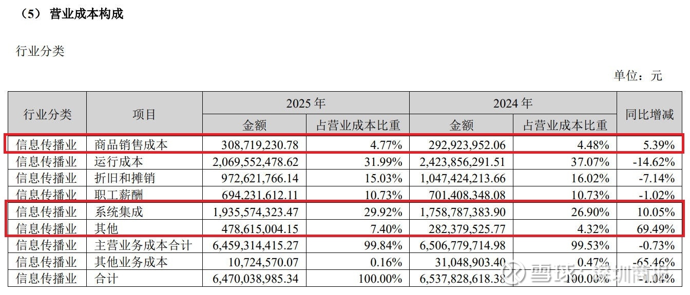 与收入下降形成对比的,是营业成本的攀升。从年报可看出,报告期内,该公司商品销售成本、系统集成和其他这三项营业成本同比上年分别增长了5.39%、10.05%和69.49%,反映出该公司在成本控制方面面临的问题所在。