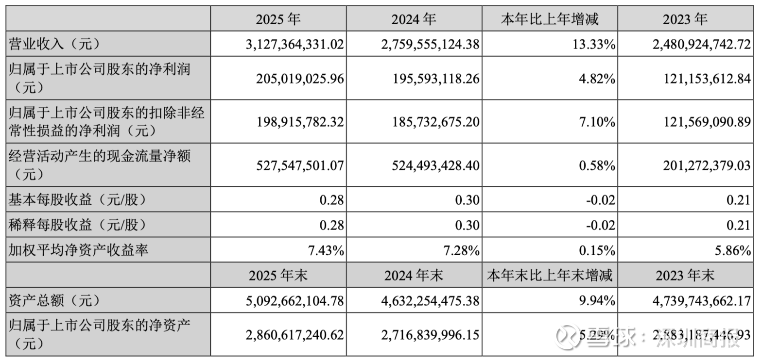 聚灿光电(300708)近日披露2025年年度报告,2025年,公司实现营业总收入31.27亿元,同比增长13.33%;归母净利润2.05亿元,同比增长4.82%;扣非净利润1.99亿元,同比增长7.10%;经营活动产生的现金流量净额为5.28亿元,同比增长0.58%。