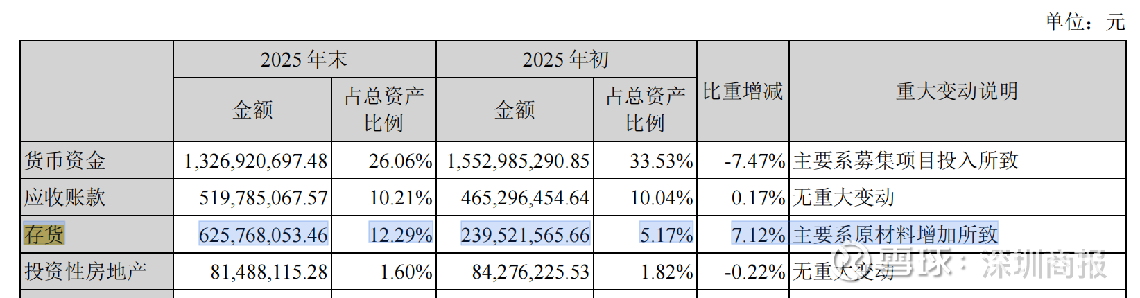 截至2025年末,公司存货达6.26亿元,占总资产比例为12.29%。