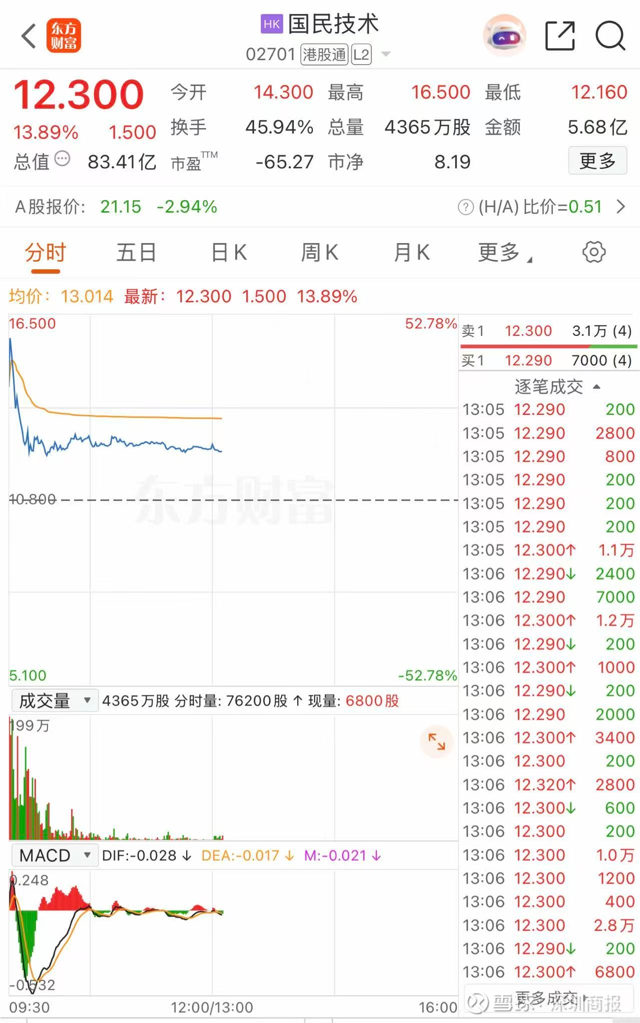 3月23日,国民技术(02701)正式登陆港交所,最终发售价为10.8港元/股,募资总额约10.26亿港元。上市首日早盘,国民技术H股一度涨超52%,最高报16.5港元/股,此后涨幅收窄。截至发稿,该股涨幅超13%,报12.3港元/股。