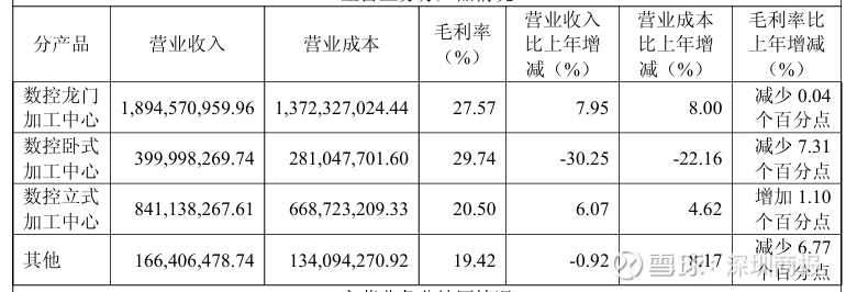 2025年受国内市场下游需求减弱影响,数控卧式加工中心销售收入下降,营收下滑30.25%,营业成本下滑22.16%,毛利率为29.74%,同比减少7.31个百分点。数控龙门加工中心和数控立式加工中心因下游市场需求增加,销售收入有所增加,但龙门加工中心的毛利率为27.57%,也有0.04个百分点的下滑。因此本年度公司营业收入33.68 亿元,同比轻微增长0.48%,基本持平。