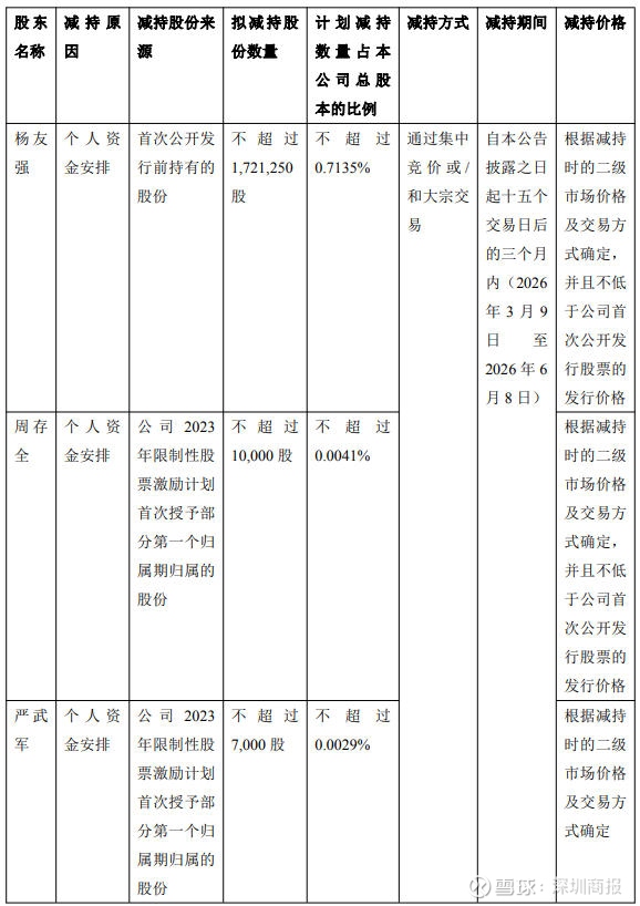 公司董事、副总经理杨友强、董事周存全、董事会秘书严武军拟减持公司股份,拟减持股份数量合计不超173.83万股。减持期间为3月9日至6月8日。