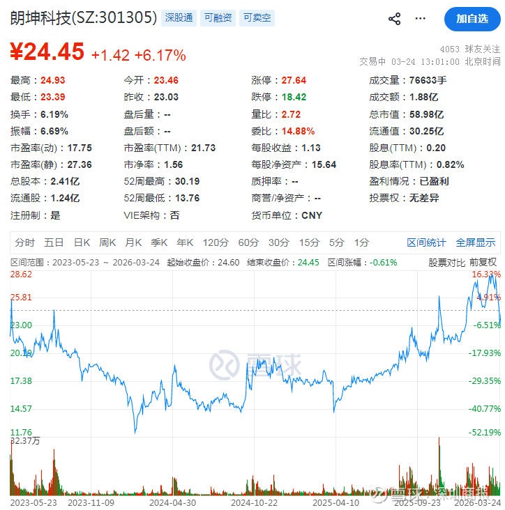 二级市场上,朗坤科技上市以来频繁跌破发行价,截至发稿,该股报24.45元/股。