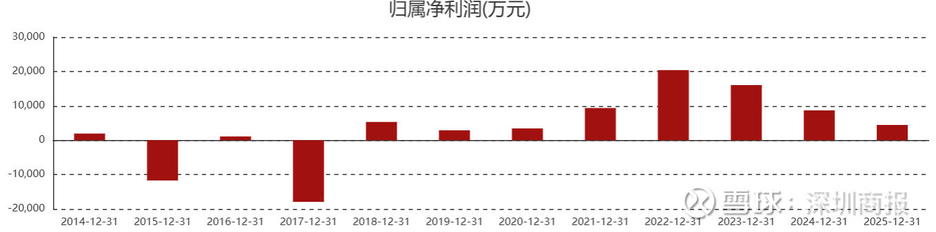 值得注意的是,在前三季度盈利的情况下,2025年第四季度,公司营业收入为3.34亿元,同比下降0.4%;归母净利润为亏损1.93亿元;扣非净利润自为亏损1.96亿元。