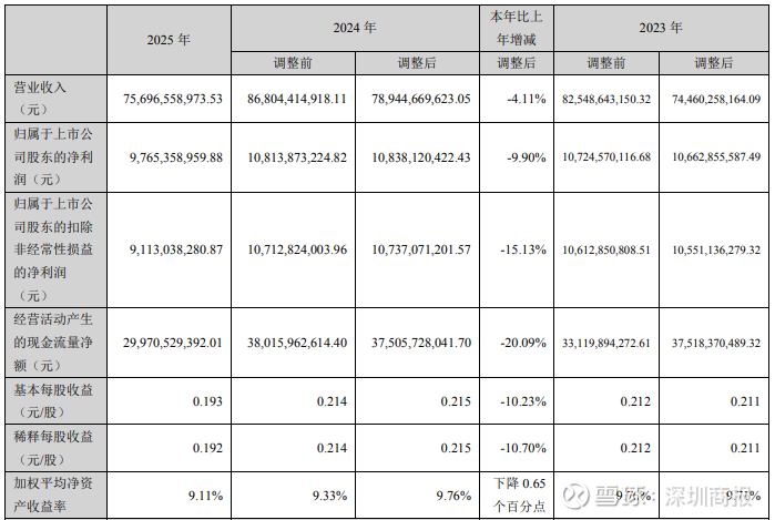 3月25日晚间,有“核电巨头”之称的中国广核(003816)发布2025年年度报告,公司全年实现营业收入756.97亿元,同比下降4.11%;归母净利润为97.65亿元,较2024年减少了10.73亿元,同比下降9.9%;扣非净利润为91.13亿元,同比下降15.13%.
