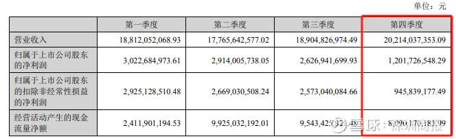 单季度来看,公司第四季度归母净利润为12.02亿元,较第三季度的26.27亿元环比“腰斩”,较2024年同期有所增长。