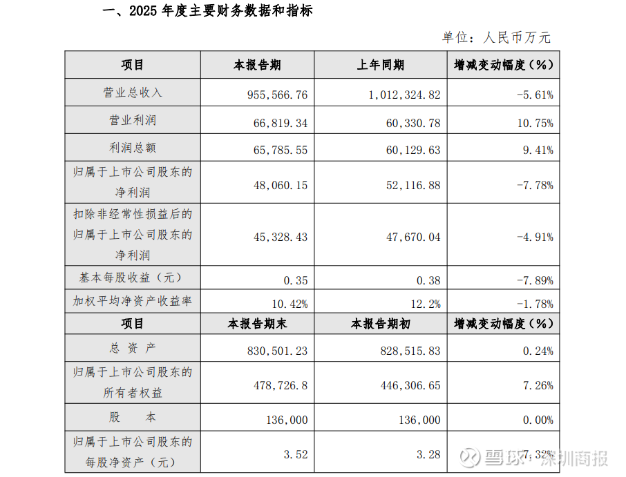 从财务数据来看,2025年公司营业总收入95.56亿元,较上年同期的101.23亿元减少约5.67亿元;利润总额6.58亿元,同比增长9.41%;营业利润6.68亿元,同比增长10.75%。