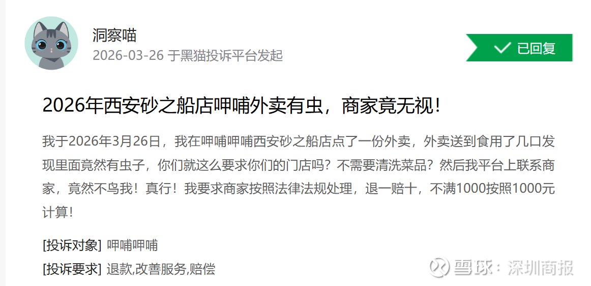 例如,有消费者投诉,2026年3月26日在呷哺呷哺西安砂之船店点了一份外卖,外卖送到食用了几口发现里面竟然有虫子;2026年2月6日晚于呷哺呷哺西安大都荟店内就餐,羊肉卷内吃出石子。
