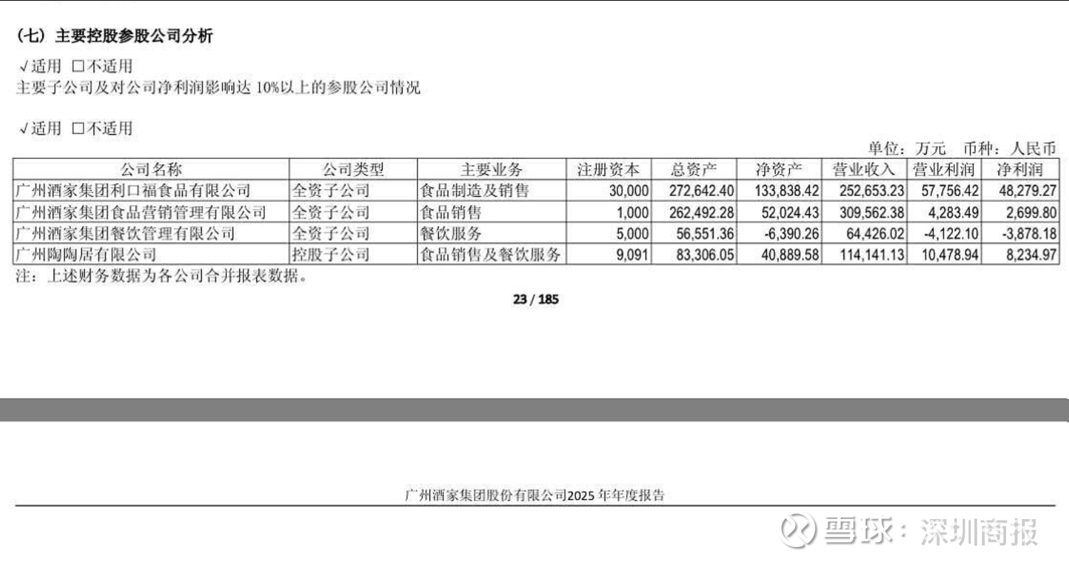 3月25日晚间,广州酒家发布2025年年报,报告期内公司实现营业收入 53.82 亿元,同比增长 5.04%;实现归属于上市公司股东的净利润 4.88 亿元,同比微降 1.19%;经营活动产生的现金流量净额 7.46 亿元,同比下降 16.37%。3月26日上午,广州酒家盘中跌超1.2%,年内跌幅逾10%。