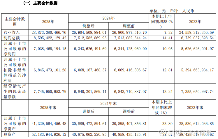 3月26日,A股调味品龙头、“酱油一哥”海天味业(603288)公布2025年年报,2025年公司实现营业收入288.73亿元,同比增长7.32%,其中调味品主营业务收入273.99亿元,同比增长9.04%;归母净利润70.38亿元,同比增长10.95%;扣非归母净利润68.45亿元,同比增长12.81%。经营现金流净额为77.46亿元,同比增长13.24%。