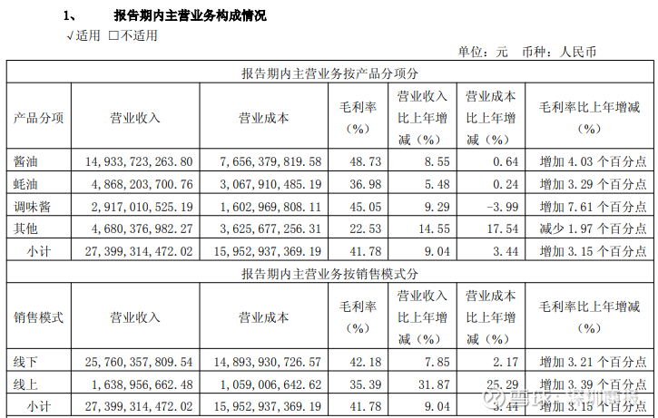 核心品类增长分化,”第二增长曲线“培育需时。年报显示,公司三大核心品类酱油、蚝油、调味酱2025年收入同比增速分别为8.55%、5.48%、9.29%,虽然保持增长,但蚝油增速相对滞后。公司也在拓展品类边界,推广食醋、料酒和复合调味品等产品(市场分析指,这些品类一般放在下表”其他“项目中),但新品类虽然成长增速(14.55%)高于三大核心品类,但也有短板,如毛利率偏低、基数小、高端化不足等,其从成长到壮大需要时间,且面临激烈的市场竞争。
