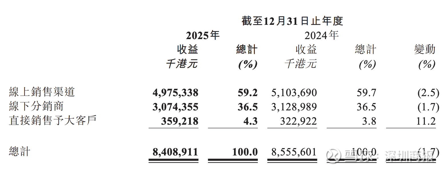 公司优化营销及全渠道销售,集团的销售及分销开支由截至2024年12月31日止年度约50.49亿港元下降约11.5%至截至2025年12月31日止年度约44.68亿港元。