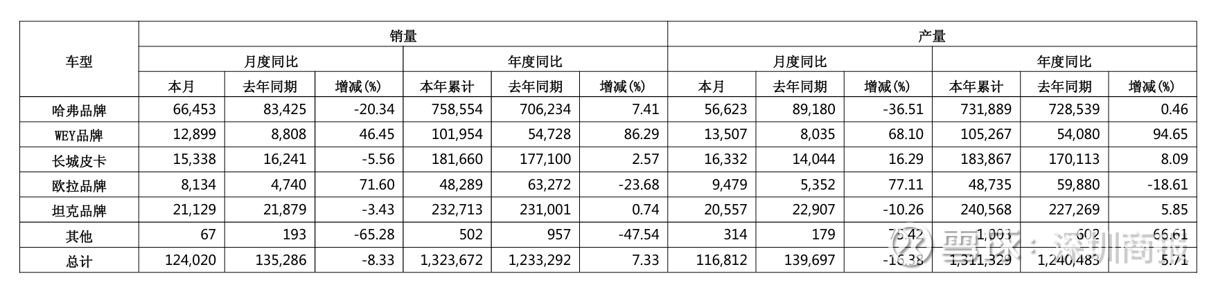 另据长城汽车此前披露的产销快报,2025年,该公司销量同比增长7.33%至132.37万辆。分品牌来看,哈弗、WEY、长城皮卡、坦克品牌销量均实现增长,欧拉品牌销量则同比减少23.68%至4.83万辆。