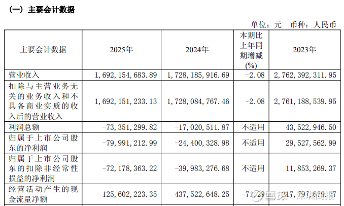 值得注意的是,2025年,公司经营活动产生的现金流量净额为1.26亿元,同比减少71.29%。公司解释称,主要系上年同期由于有店铺切店及转变运营模式因素使得一次性现金流入增加,上年同期基数较大所致。若剔除上述因素,按同口径考虑,经营活动产生的现金流量净额相比上年同期有所增加。
