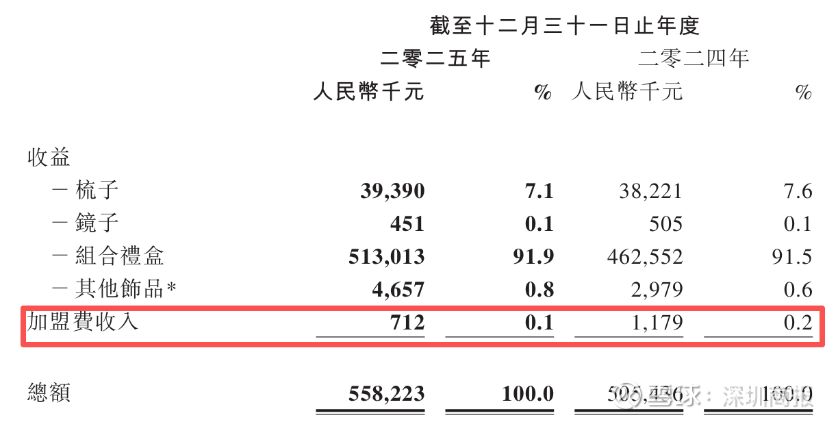 记者注意到,虽然公司加盟店铺总数有所增加,但加盟费收入出现“跳水”。2025年,公司加盟费收入约为71.2万元,与2024年的约117.9万元相比,同比减少39.6%。