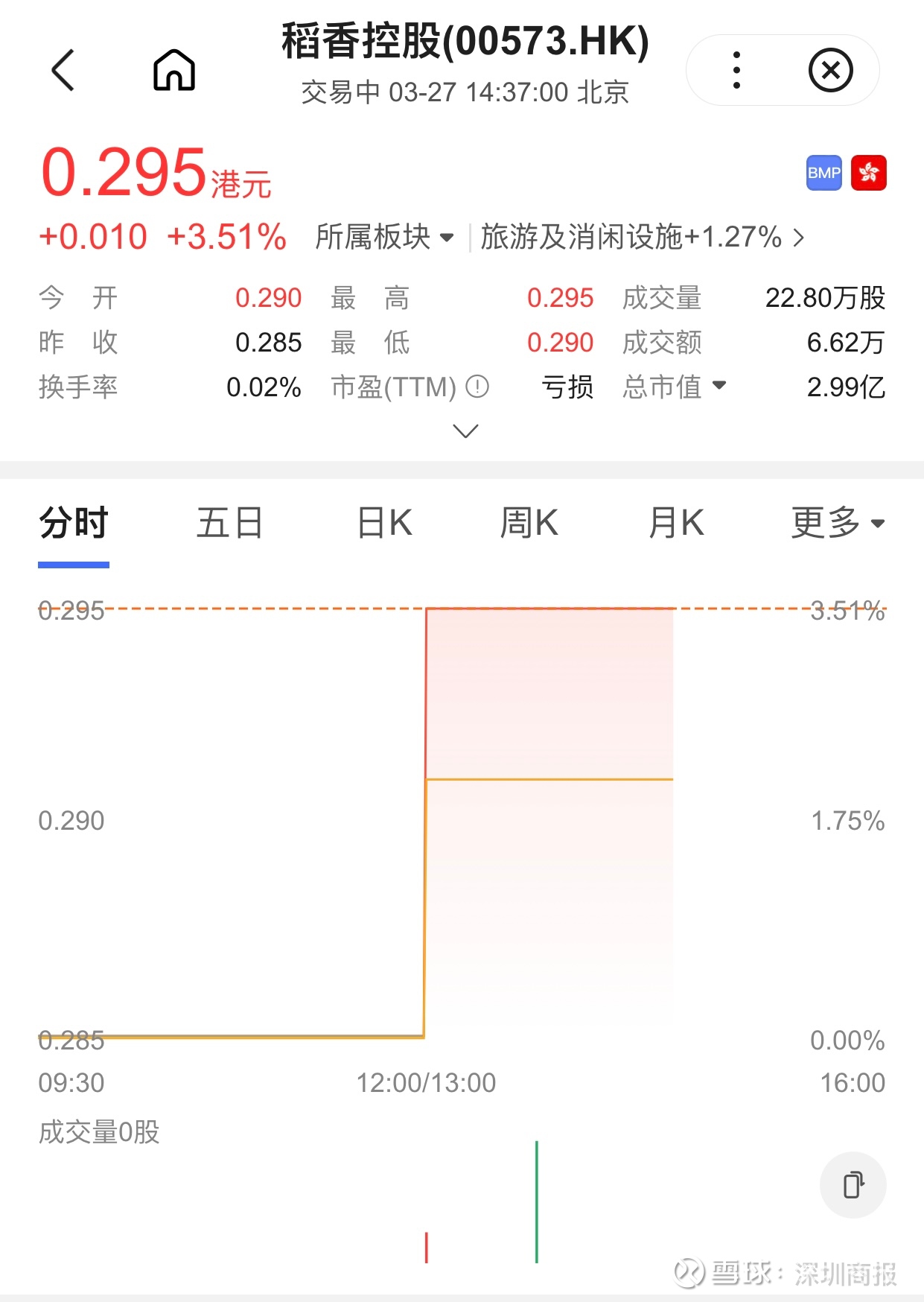 截止3月27日下午,稻香控股股价为0.295港元/股。这是其连续两年收入下降,并录得亏损。
