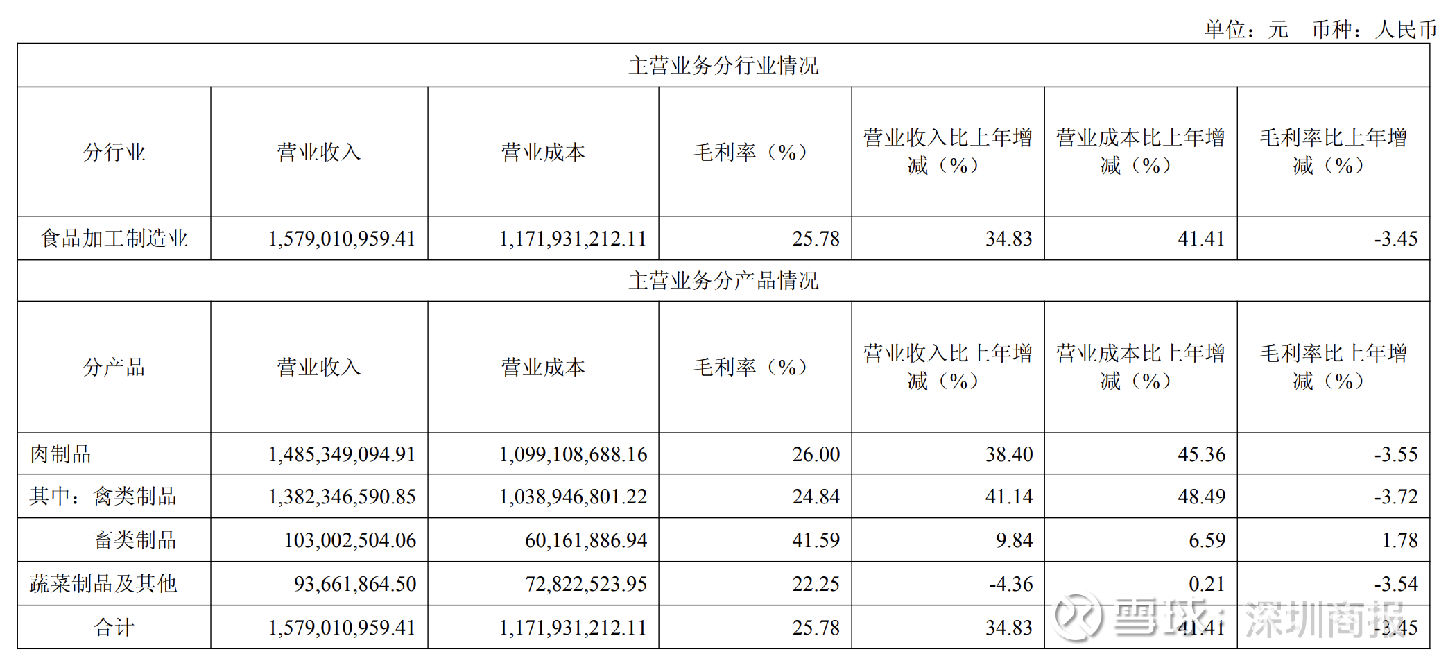 分行业来看,有友食品营收基本来自食品加工制造业,期内收入15.79亿元,毛利率下滑3.45%。分产品来看,公司肉制品毛利率下滑3.55%,其中禽类制品下滑3.72%,畜类制品增长1.78%;蔬菜制品及其他产品毛利率下滑3.54%。