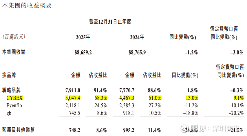 其中,高端品牌CYBEX表现亮眼,受益于全球全渠道布局及产品创新,实现收益50.47亿港元,同比增长13.0%(按恒定货币口径增长9.1%),占总收益比重提升至58.3%,较2024年的51.0%显著提高,其经营溢利增速甚至超越收益增速,展现出强劲的品牌韧性。