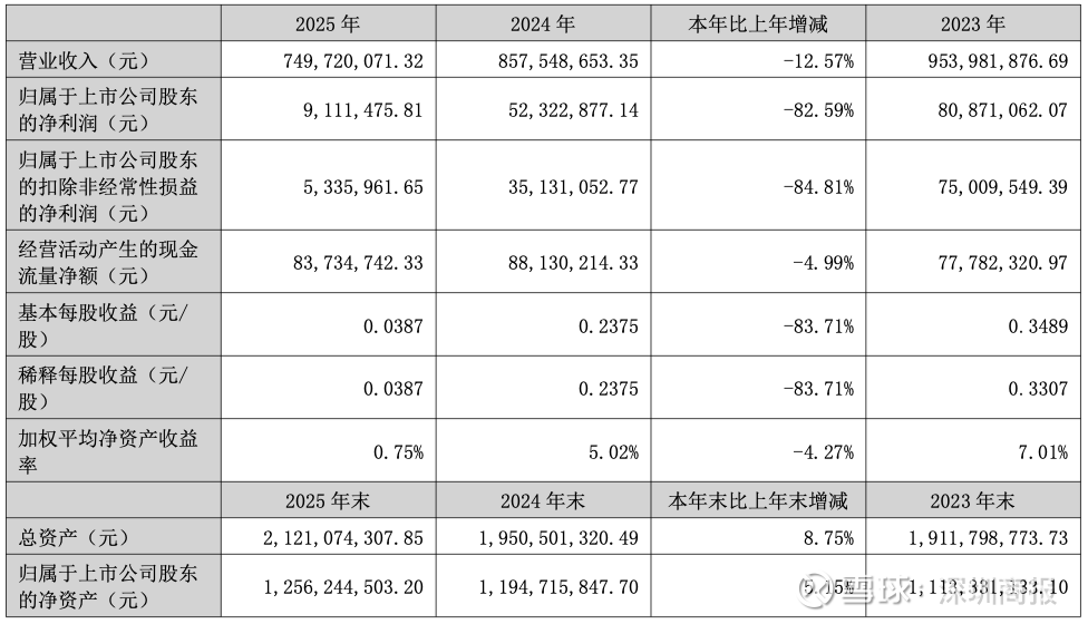 3月30日,新天药业(002873)公布2025年年报,公司营业收入为7.5亿元,同比下降12.6%;归母净利润为911万元,同比下降82.6%;扣非归母净利润为534万元,同比下降84.8%;经营现金流净额为8373万元,同比下降5.0%。
