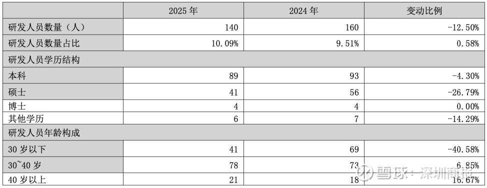 2025年,公司研发人员数量为140人,较2024年的160人同比减少12.50%。研发投入金额为49,932,921.82元,较上年同比减少16.24%。