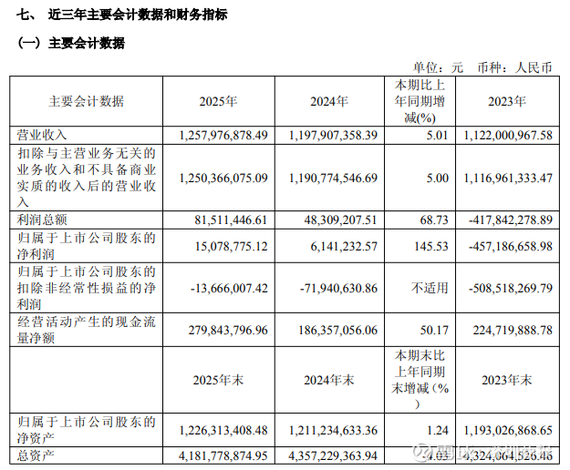 财务数据显示,2025年泉阳泉实现营业总收入12.58亿元,同比增长5.01%;归母净利润1507.88万元,同比增长145.53%;扣非净利润亏损1366.6万元,上年同期亏损7194.06万元;经营活动产生的现金流量净额为2.8亿元,同比增长50.17%。