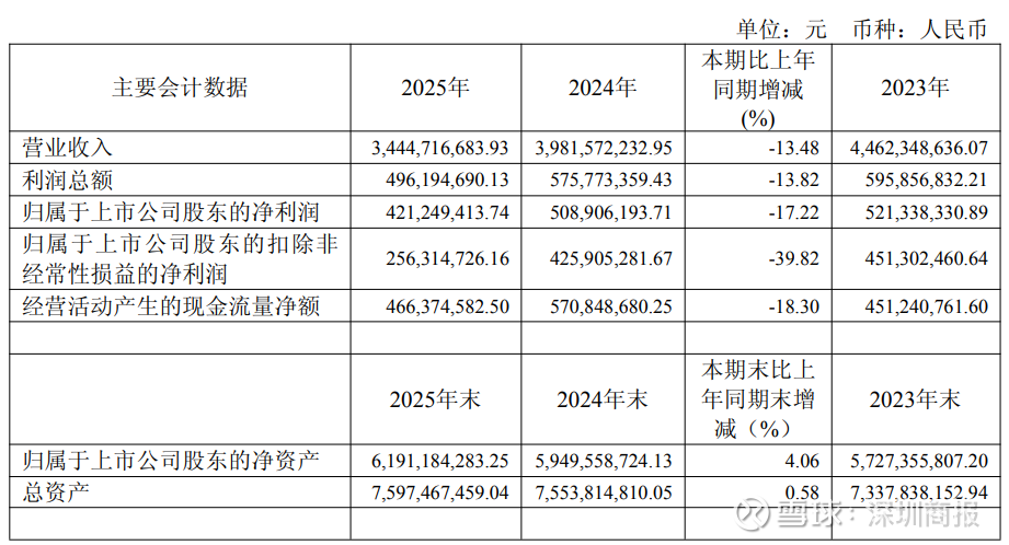 财务数据显示,公司2025年经营活动产生的现金流量净额为4.66亿元,较上年同期减少18.30%。公司经营活动获取现金的能力大幅下降。