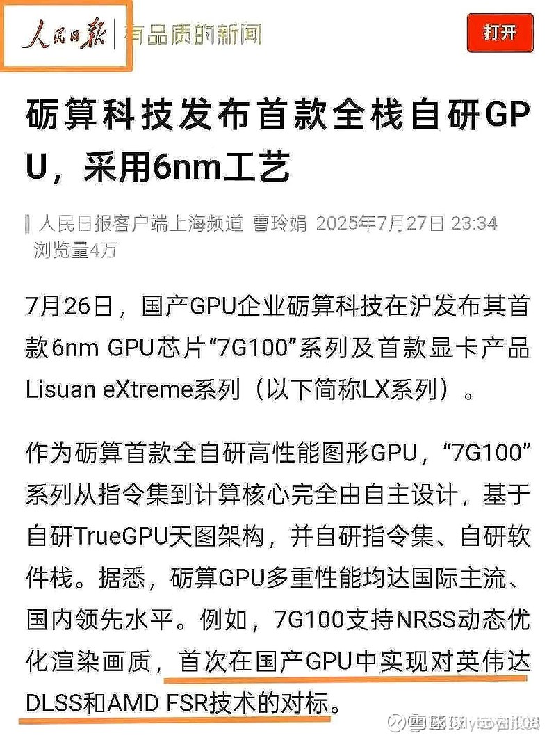 $东芯股份(SH688110)$ 我们散户一没内部渠道,二没专业知识,只能追求模糊的正确。在砺算7月发布会的时候,人民日报电子版就进行了报道,并着重提示技术对标英伟达。作为一家有着举足轻重影响力的官媒,绝对不会未经调查胡乱报道,因此已足以说明砺算的真实性和先进性。目前东芯在百元附近已盘整一个多月,这段时间正是消化前期获利筹码,机构建仓吸筹的消息真空期,我相信留给机构的时间已经不多了,随着砺算量产具体消息的落地,东芯的股价腾空而起指日可待!