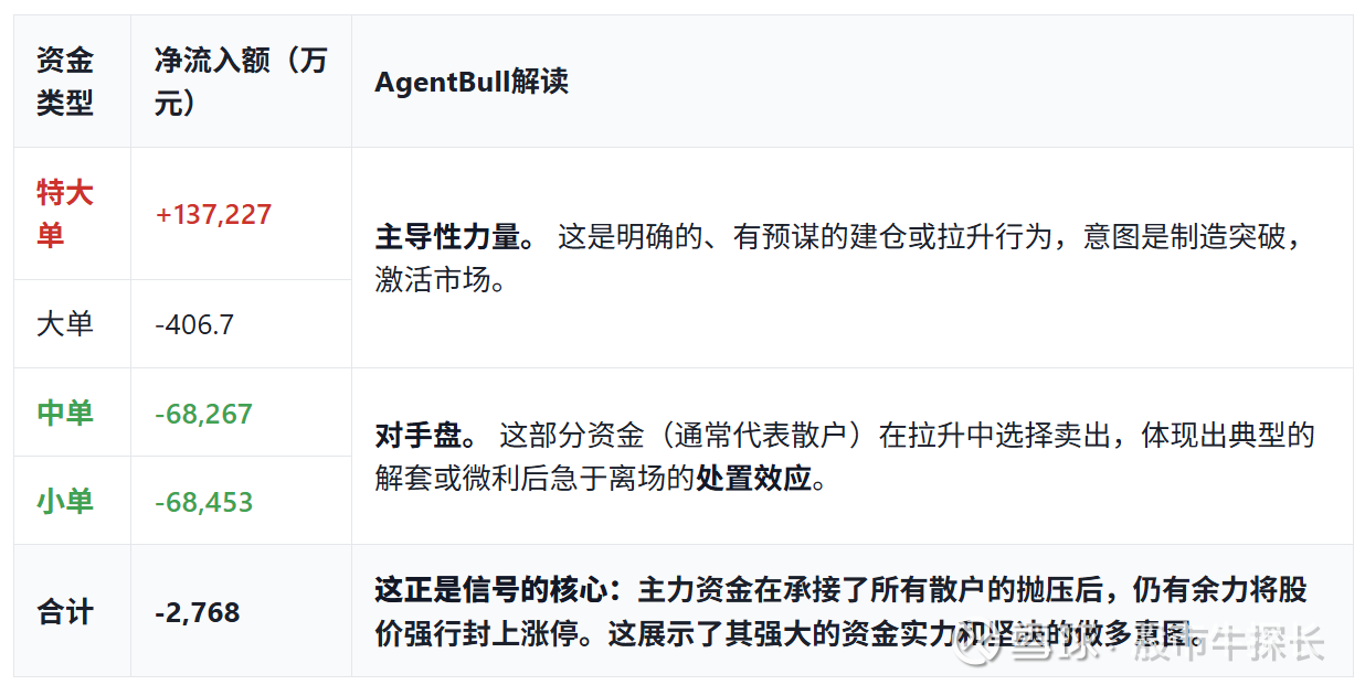 主导资金撤离/反手风险 (最高级别风险): 当前唯一的支撑是主导资金。一旦其拉升受阻或完成吸筹后转为洗盘,可能出现快速、大幅的回调。