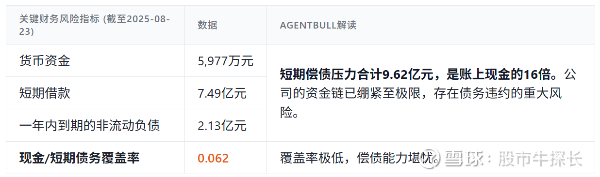 截至2025年中报,公司面临极其严峻的流动性危机。其账面货币资金与短期债务之间存在巨大鸿沟,资金链已绷紧至极限。