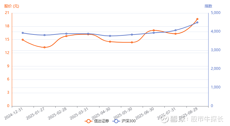 2025年以前,信达证券的逻辑与绝大多数中型券商无异,其价值高度依赖市场景气度。经纪、自营业务是其利润核心,业绩与大盘指数走势高度相关。2025年8月28日发布的半年报显示归母净利润达10.24亿元,同比增长显著,但这离不开7-8月沪深300指数强势反弹(7月涨3.54%,8月涨10.33%)所营造的温床。这仅仅是周期性的“量变”,而非结构性的“质变”。