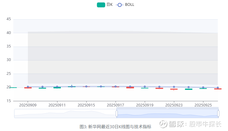 盘面语言:自9月初以来,股价在19元至21元区间内窄幅震荡,成交量持续萎缩。布林带(BOLL)上下轨从9月9日的(21.41, 19.08)收窄至9月26日的(20.88, 19.01),表明波动率压缩至极限,变盘在即。MACD指标在零轴下方弱势运行,空头稍占优势但动能衰竭。