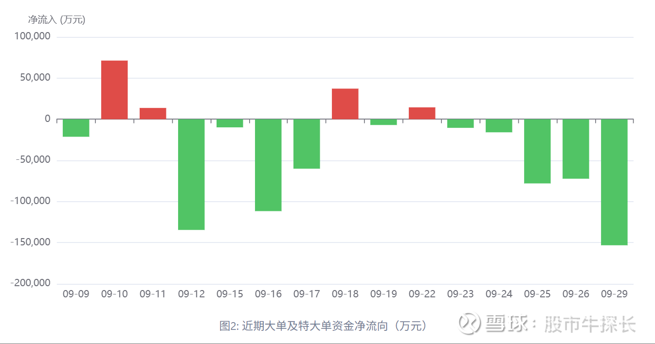 高位派发阶段 (9/24-9/29): 股价冲高回落,但特大单与大单资金连续4个交易日呈现巨额净流出。仅9月24日至29日,合计净流出超37.9亿元。