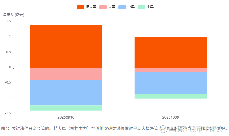 这种“整体流出,核心流入”的结构,是典型的“筹码换手”。前期获利的中小投资者因恐高而卖出,而代表市场中最敏锐力量(核心机构、顶级游资)的特大单,则在关键突破位置不计成本地吸纳。这种行为金融学上的“分歧”,正是健康趋势的开端。