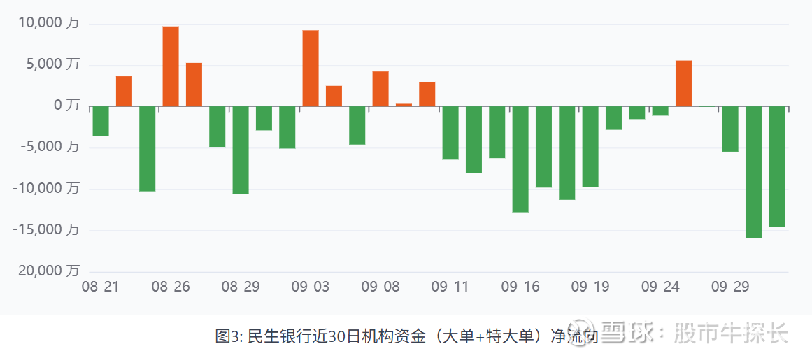 该图直观反映了“聪明钱”的动向。绿色柱体代表当日净流出,红色代表净流入。我们可以看到,在9月的大部分交易日,尤其是股价下跌期间,代表机构行为的大单与特大单资金均呈现持续、大规模的净流出状态,这为股价的弱势提供了最直接的证据。