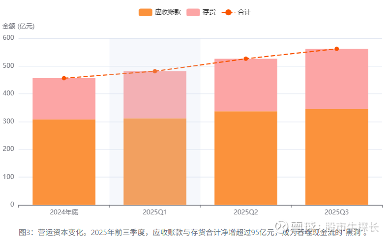 这种“增利不增金”的模式,本质上是通过大幅扩张营运资本(应收账款与存货合计净增超100亿元)和持续的外部融资来维持的。