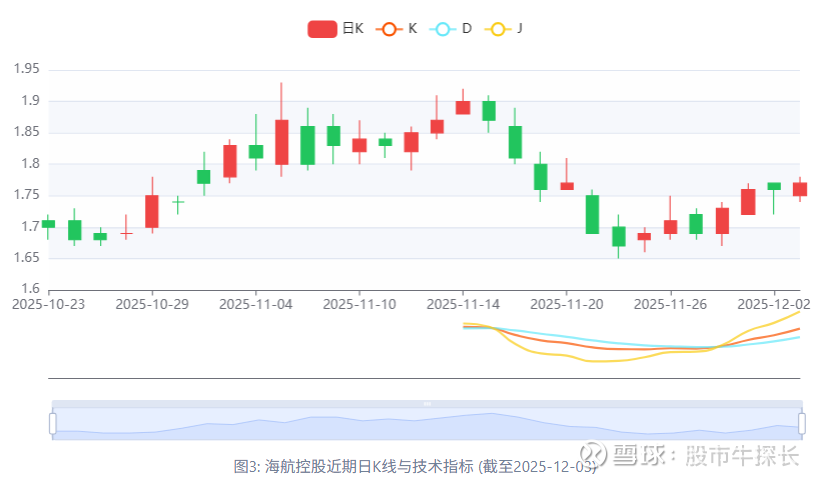 K线图显示股价近期放量上涨,但技术指标已发出警示。截至12月3日,股价收于1.77元,KDJ指标的J值已超过100,进入严重超买区。布林线(BOLL)上轨也对股价形成压制。这表明,短期内,向上的空间日益收窄,而向下的波动风险正在急剧累积。 当前追高,无异于火中取栗,盈亏比极不理想。