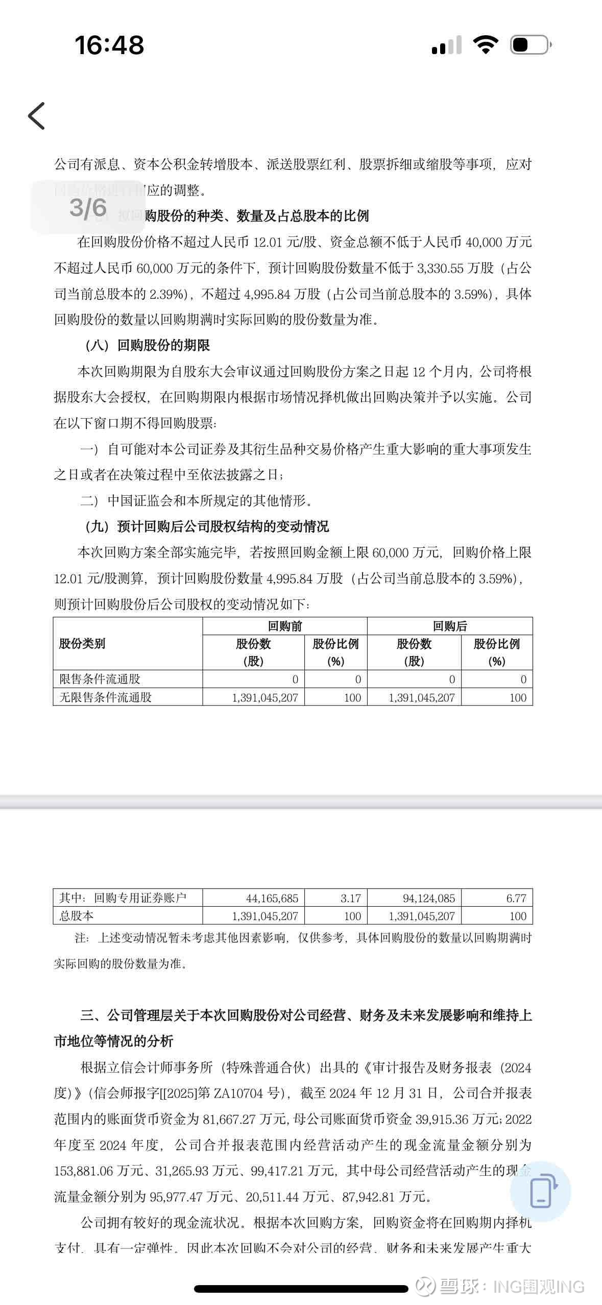按以前的惯例,嘉化回购一般都接近上限,图中预计股权变动也是拿上限举例的,如果今年回购4995万股,不超过500万股用于股权激励。明年就算注销4000万股,就是2.94%。