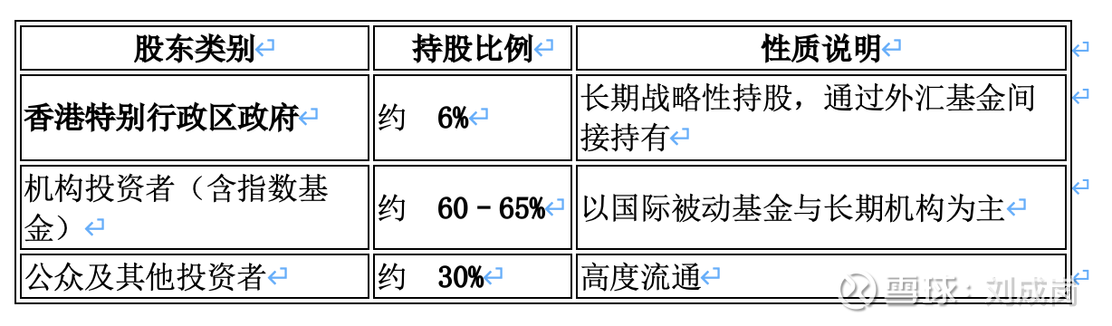 注:香港特区政府并非港交所的控股股东,但作为重要长期股东,在市场稳定与制度层面具有象征意义;其并不参与港交所日常经营决策。