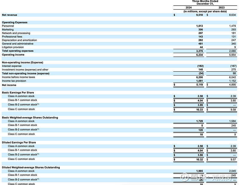 3、Visa的EPS和股本还分了Class A, Class B-1,Class B-2,Class C。