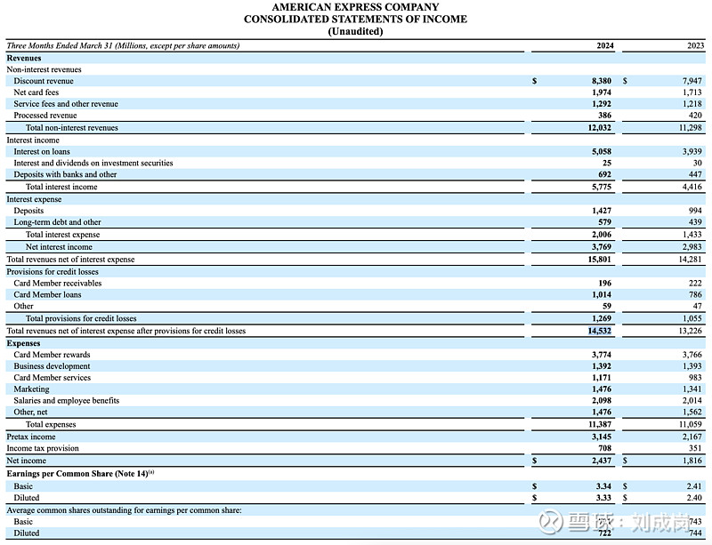 此前说到写代码从XBRL中提取三张表用AI协助写也没法做到“要有用,于是便有了光”,有朋友不理解,我用$美国运通(AXP)$ 和$VISA(V)$ 这两家公司的利润表举例子。