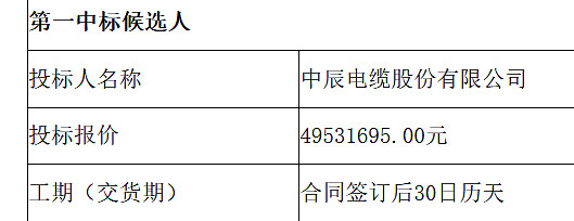 证券之星消息,根据天眼查APP数据整理,根据内蒙古圣圆氢能源科技有限公司月9日11发布的《鄂尔多斯市伊金霍洛旗圣圆能源风光制氢加氢一体化项目125MW风电项目-电力电缆采购鄂尔多斯市伊金霍洛旗圣圆能源风光制氢加氢一体化项目125MW风电项目-电力电缆采购标段中标候选人公示》内容显示,中辰电缆股份有限公司为第一中标候选人,投标报价约4953万元。交货期,为合同签订后30日历天。
