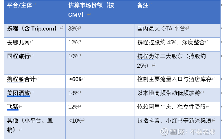 首先,市场高度集中削弱了竞争基础。携程系通过控股、参股等方式,实际控制在线旅游市场约六成份额: